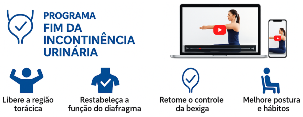 Você aprende a respirar do jeito certo, ativando o diafragma e reconectando o reflexo natural do assoalho pélvico — o músculo que controla a bexiga.